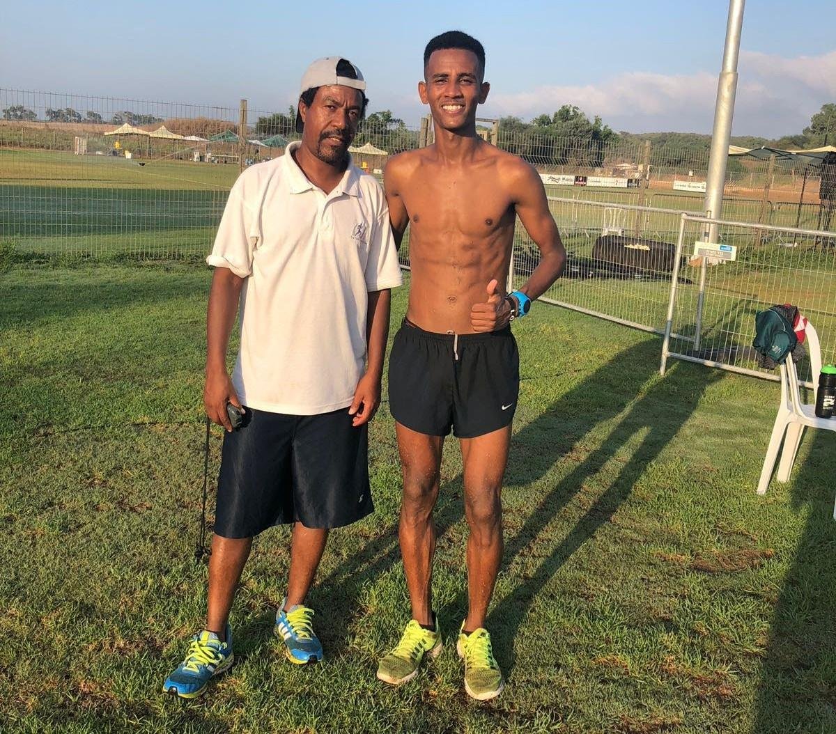Tachlowini Gabriyesos con su entrenador, Alemayu Faloro