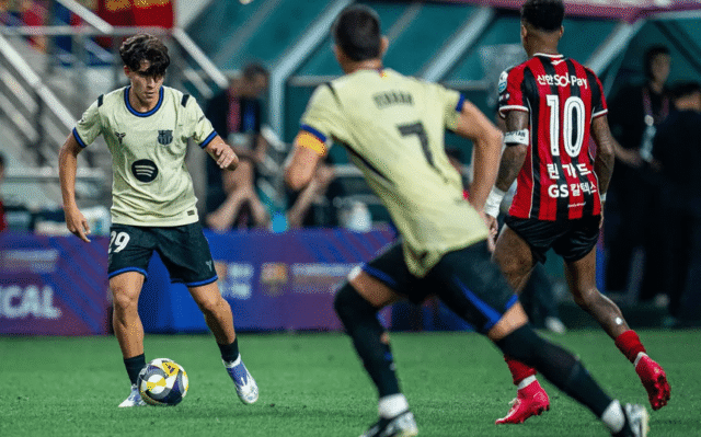 El delantero inglés contará con el apoyo de Lamine Yamal por la derecha y Toni Fernández por la izquierda, ofreciendo ritmo y creatividad en el tercio de ataque.