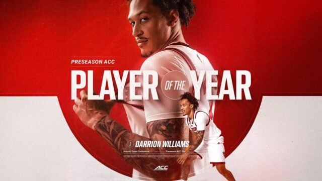 CHARLOTTE, Carolina del Norte – La Conferencia de la Costa Atlántica dio a conocer sus honores de pretemporada el martes, con NC State Darrion Williams ganando el reconocimiento de Jugador del Año de Pretemporada, mientras que el Pack obtuvo el cuarto lugar en la encuesta de pretemporada de los medios.
